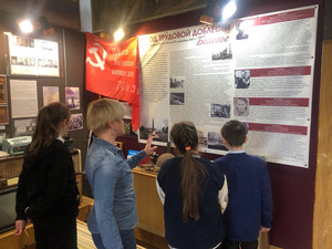 Ребята с интересом слушали рассказ экскурсовода о Великой Отечественной войне, о героических подвигах земляков на фронте и в тылу врага, о боевых наградах, внимательно рассматривали экспонаты, задавали вопросы.