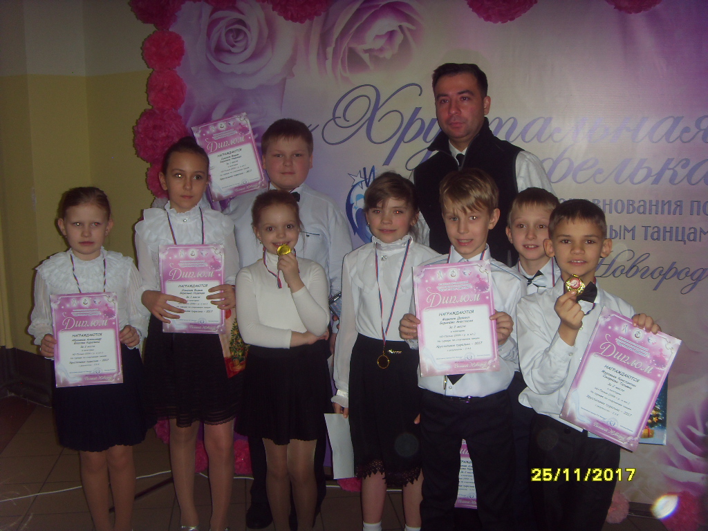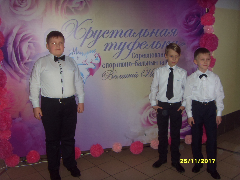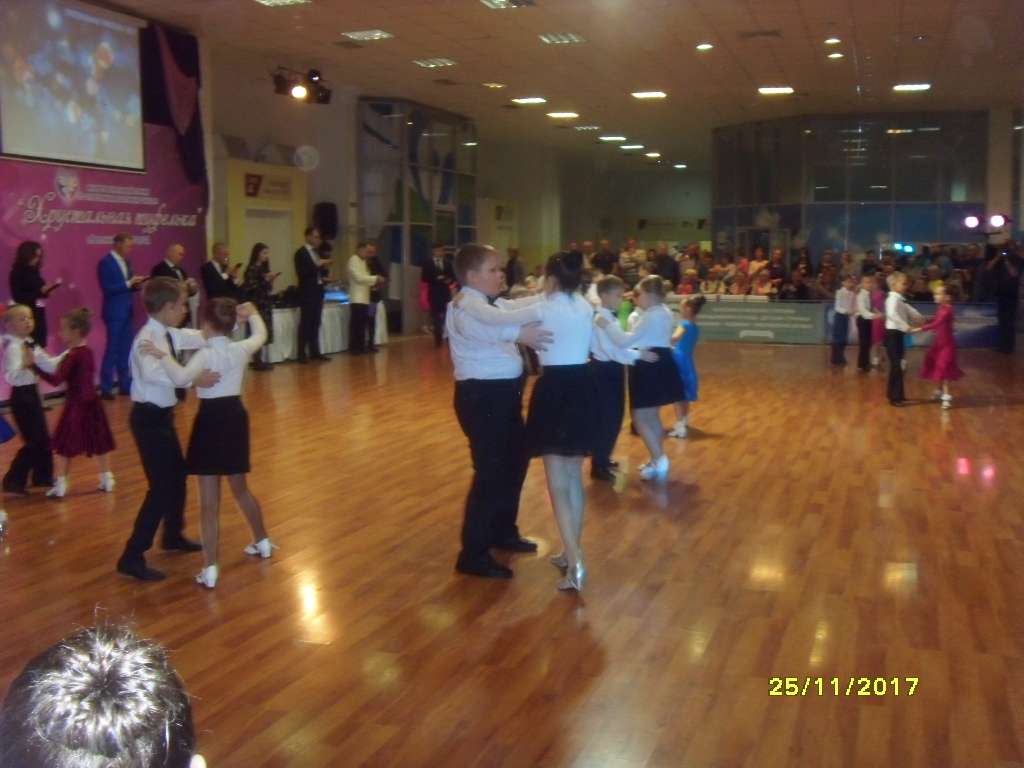 25 ноября в Великом Новгороде прошёл межрегиональный турнир по спортивно-бальным танцам «Хрустальная туфелька - 2017». В нём приняли участие порядка 700 танцоров разного уровня подготовки в возрасте от 3 до 40 лет. На паркете соревновались танцевальные пары их Пскова, Санкт-Петербурга, Петрозаводска, Москвы, Новгорода и Твери. И как приятно было видеть 4 танцевальные пары из города Бологое. Это ученики 3В класса МБОУ «СОШ № 1».