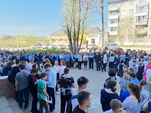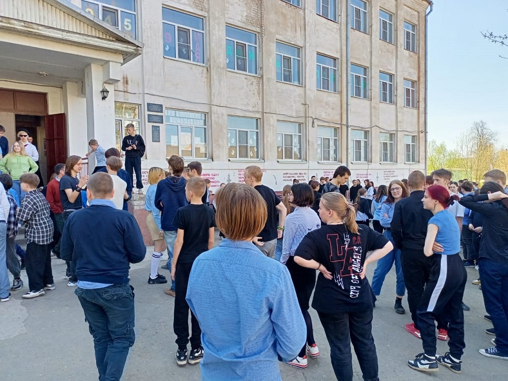 Необычную картину могли наблюдать прохожие на площадке перед центральным входом в нашу школу – все обучающиеся, учителя, а также сотрудники школы выстроились в колонны перед зданием.