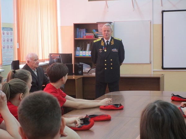 На встречу с ребятами пришел Свинцов Александр Васильевич контр-адмирал Краснознамённого Северного флота в отставке. Последняя должность – командир 4 эскадры подводных лодок.