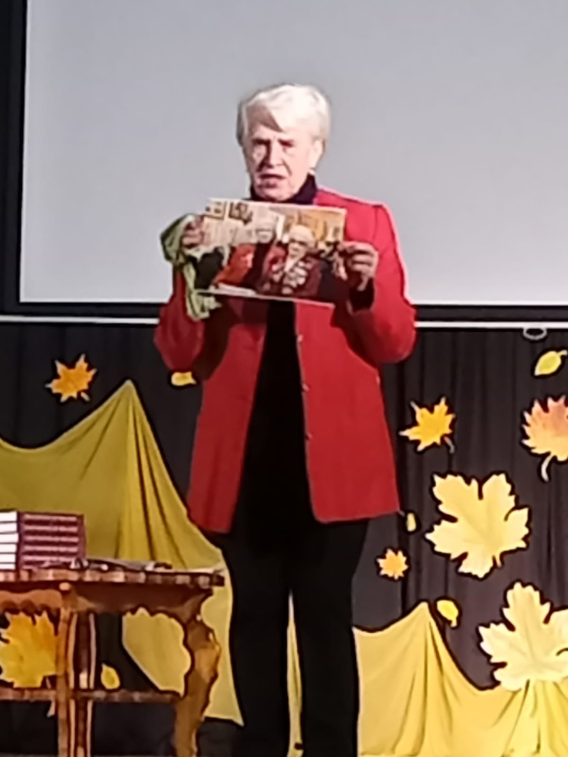 Вспоминали бои, которые шли в этих местах 80 лет назад. На Ильинском рубеже, в октябре 1941-го года подольские курсанты уничтожили до 5 тысяч немецких солдат и офицеров, подбили около 100 танков. Они выполнили свою задачу – задержать врага любой ценой. Цена эта – две с половиной тысячи жизней. На уроке прозвучали стихи о войне, на экране продемонстрировали кадры из фильма «Подольские курсанты».