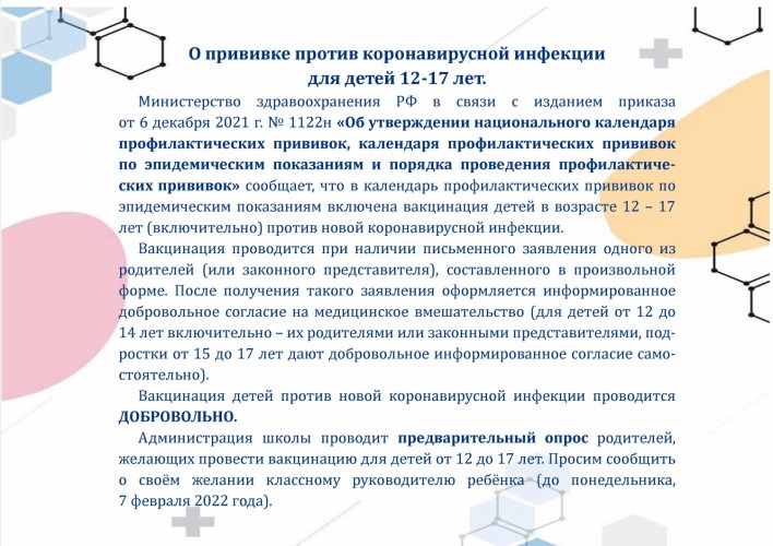 Главная » 2022 » Февраль » 2 » Вакцинация против коронавирусной инфекции для детей 12-17 лет