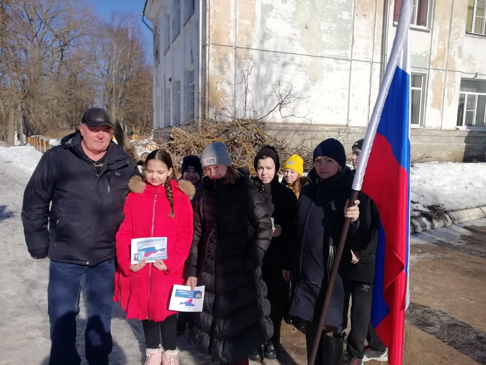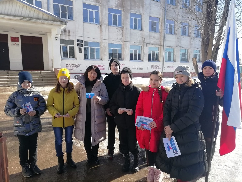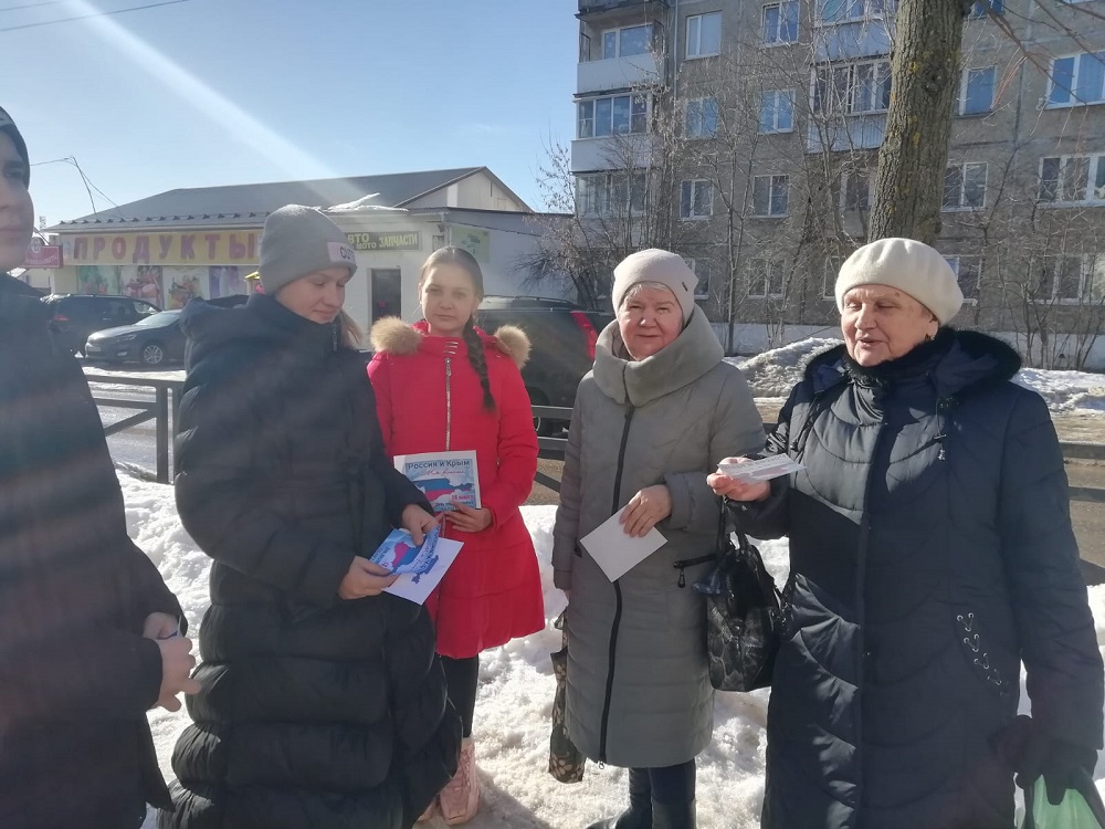 Накануне этой памятной даты ребята нашей школы провели акцию, которая напомнила жителям города суть произошедшего исторического воссоединения России и Крыма, его значение для судьбы страны.