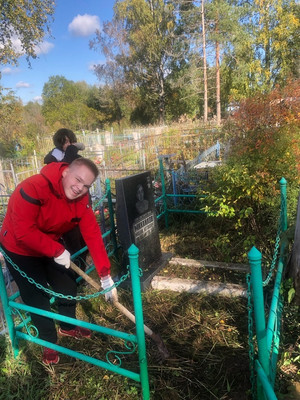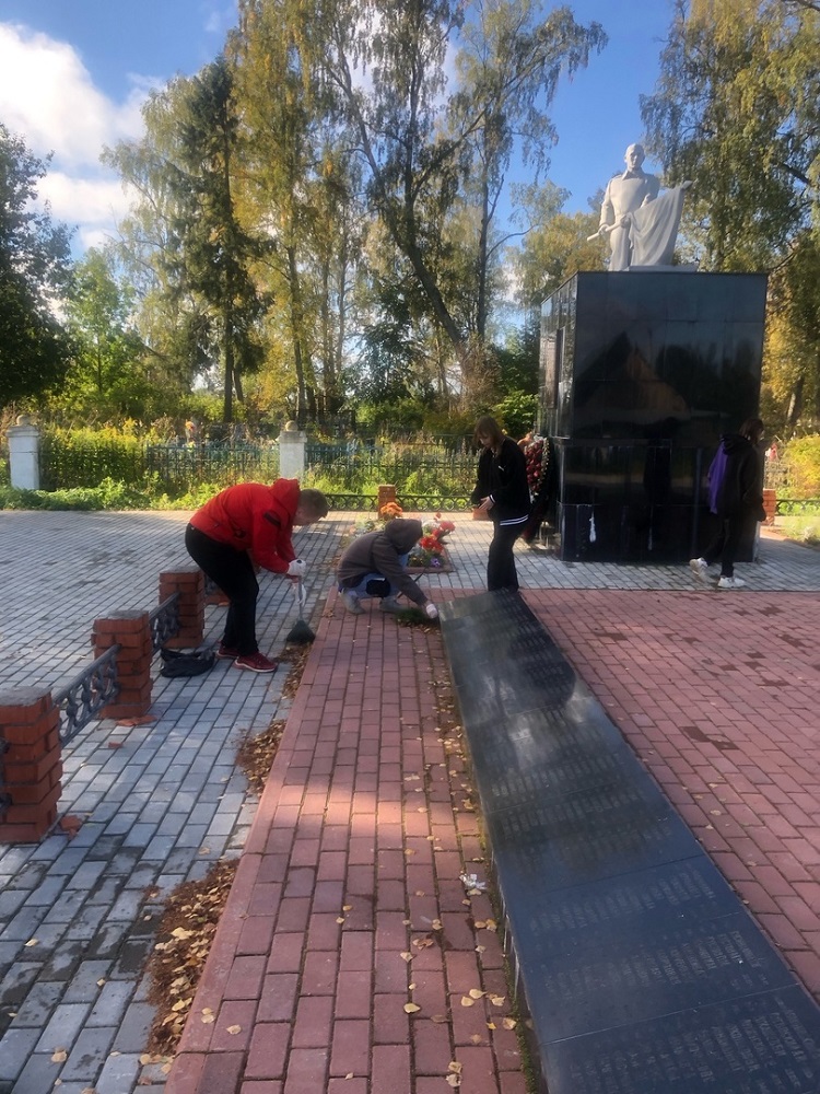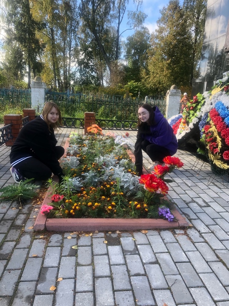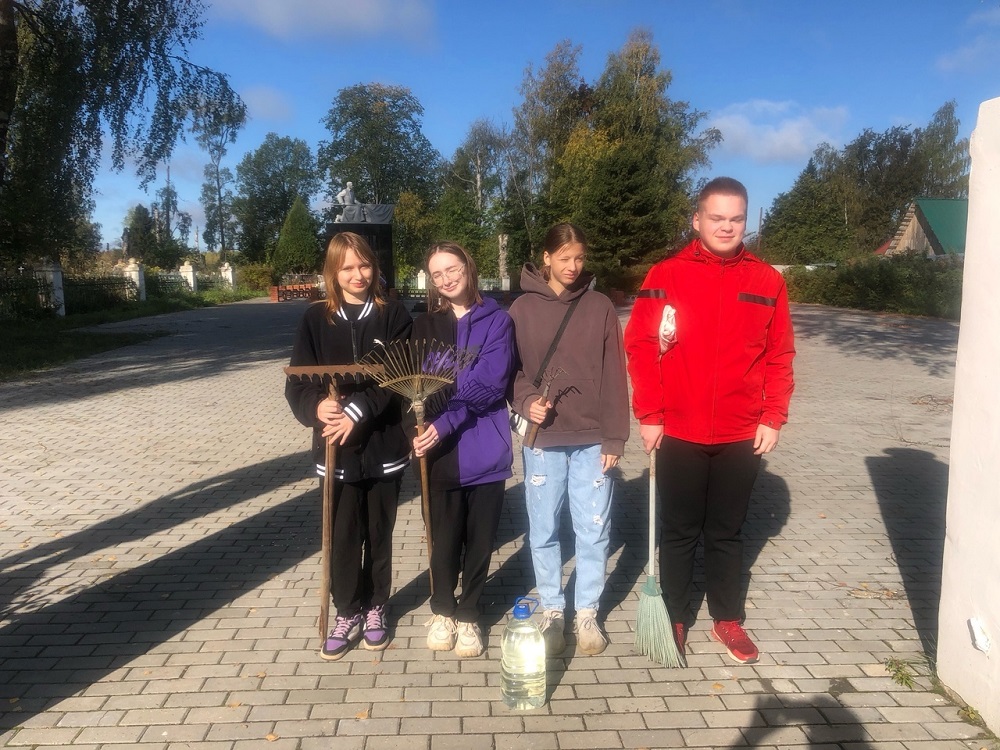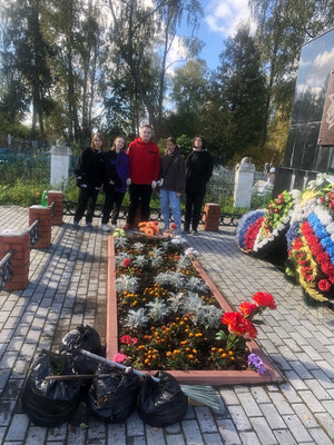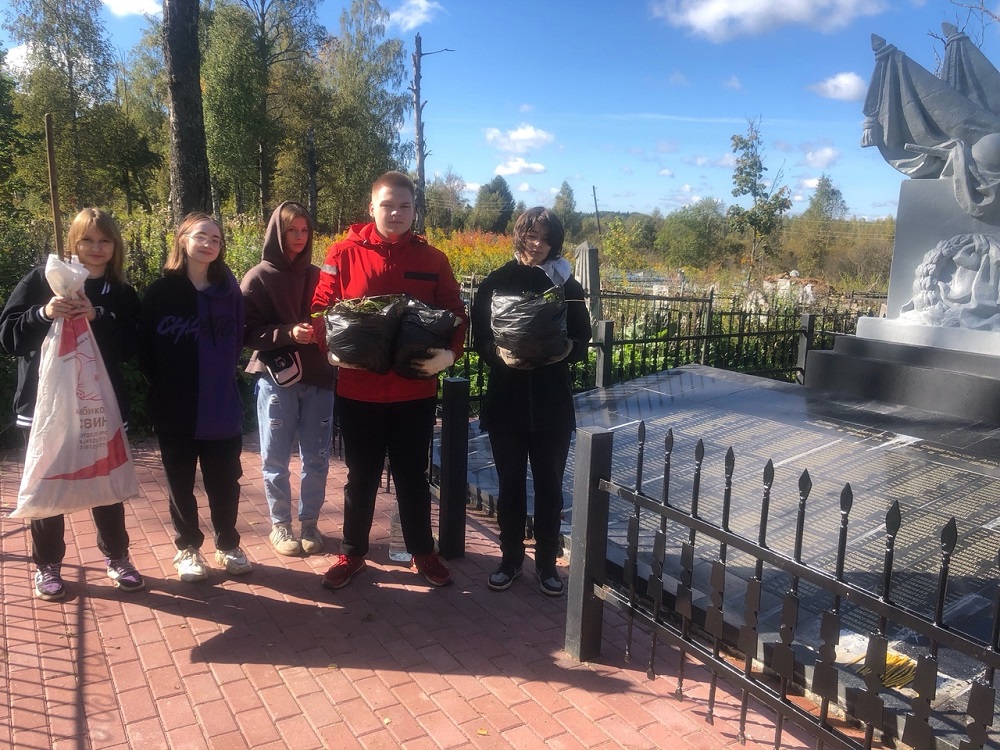 Ребята пропололи цветочные клумбы, подмели опавшие листья, очистили заросшую территорию индивидуальных могил от травы, смыли пыль и грязь с памятных плит…