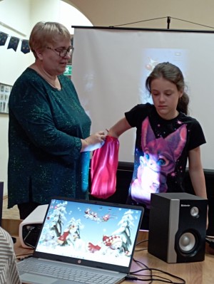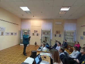 Ребята с удовольствием отвечали на вопросы, высказывали свои предположения. Затем, в преддверии Нового года, ребята совместно с Ириной Александровной написали письмо Дедушке Морозу. Очень всем понравился конкурс «Мешок Деда Мороза», в котором дети на ощупь угадывали игрушечные копии животных. Потом мы с большим удовольствием посмотрели мультфильм «Новогоднее путешествие». В завершении встречи ребята посмотрели на представленные музейные экспонаты: фотографии, открытки и ёлочные игрушки из семейных и музейных архивов. Спасибо большое Судаковой Ирине Александровне и всем сотрудникам музея им. Н. И. Дубравицкого за незабываемую, познавательную и интересную встречу.