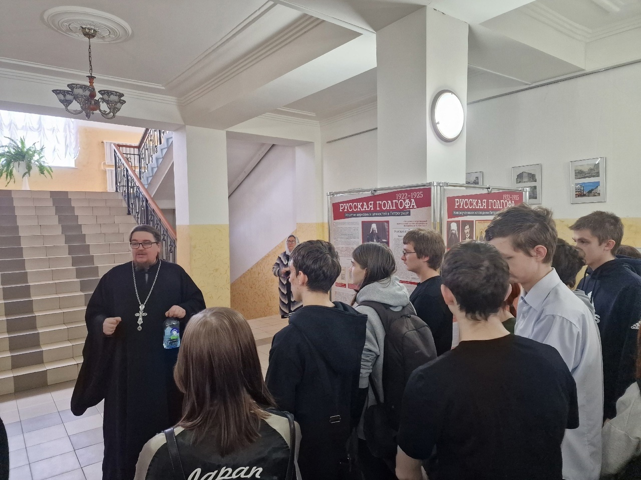 В Бологовском благочинии открылась выставка «Русская Голгофа, 1922-1925 г.». Экспозиция открылась в Центре культуры и досуга г. Бологое. В связи с этим событием обучающиеся 10 класса вместе с учителем истории - Фёдоровой Натальей Васильевной с удовольствием посетили данное мероприятие.