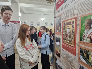 Экспозиция приурочена к 25-летию канонизации новомучеников и исповедников на Архиерейскрм Соборе 2000 года, 100-летию блаженной кончины святителя Тихона, Патриарха Московского и всея России, и Году осмысления святости новомучеников в Тверской епархии. Настоятель Свято-Троицкого храма, Протоиерей Сергий Желябовский,познакомил ребят с уникальными архивными материалами о периоде 1922–1925 годов, личности Патриарха Тихона, противостоянии обновленческому движению.