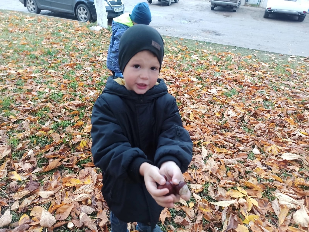 Памятник украшает каштановая роща. Всё без исключения нашли каштаны, которые используем для поделок.