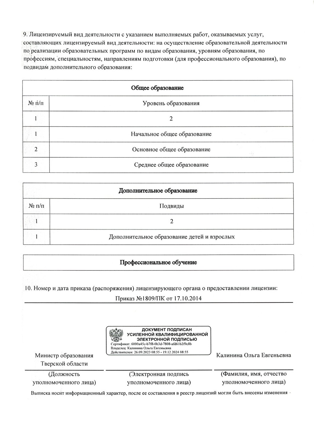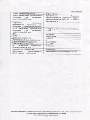 | Среднее общее образование | 2 | 40 | 0 | Основная образовательная программа среднего общего образования |